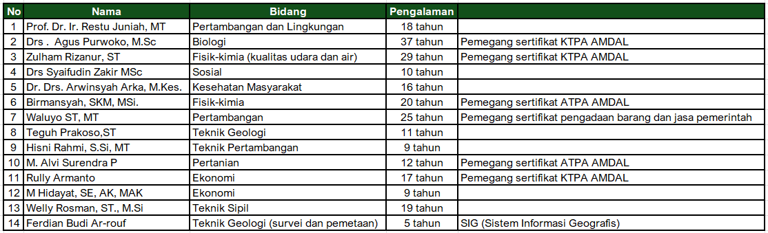 Menjadi perusahaan jasa konsultan pertambangan dan lingkungan serta pembangkitan listrik yang berwawasan lingkungan, dengan reputasi dan keunggulan komperatif, melalui potensi SDM mampu bersaing di era global.